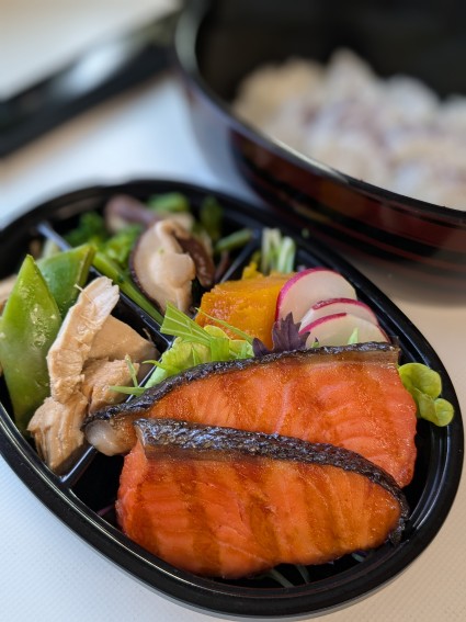 シャケを塩サバにしたり、ひき肉で小さなハンバーグを作ったり、