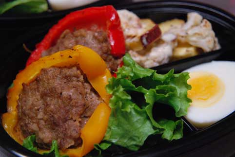 このお弁当は、下ごしらえしたものをヘルシオに入れてボタンを押すだけでできる。