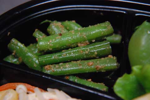 インゲンはダシ醤油で味を付けてからすりごまをまぶす。