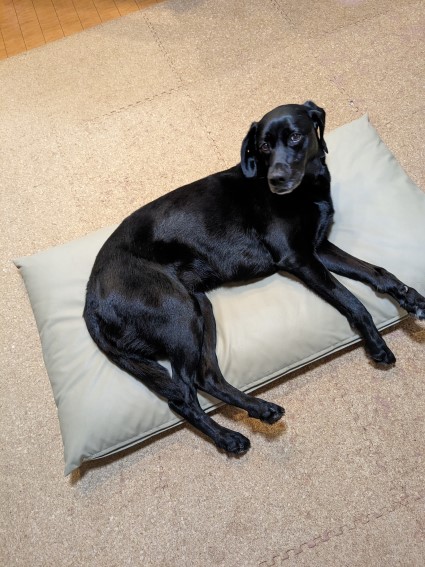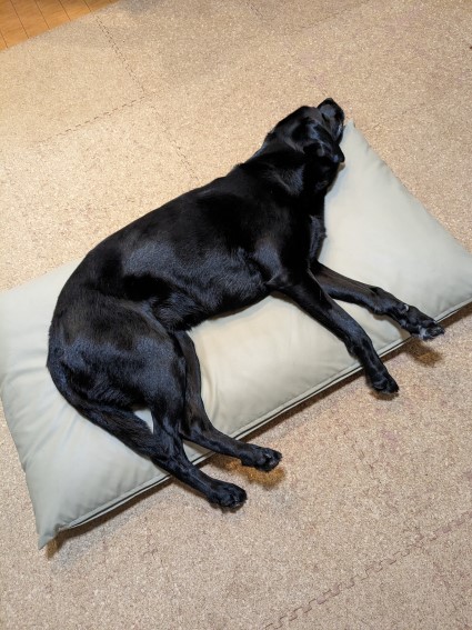 わさびがクッションの上にはみ出すことなく上手に寝ている。