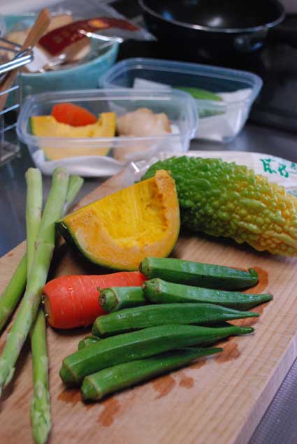 今の季節、ゴーヤやかぼちゃ、オクラにアスパラなどなど