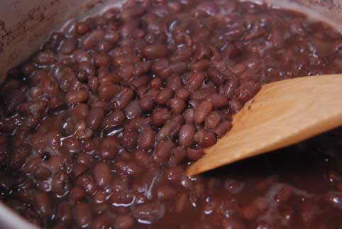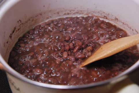 植物性タンパク質を取るためにあずきを煮た。