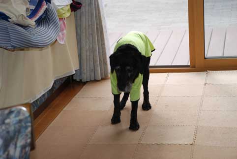 掃除機をかけるので、窓を開けてかるびのベッドとかを上げると