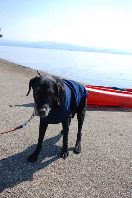 たくさんあるシジミの貝殻にクンクンしたり、カヌーに興味津津だったり