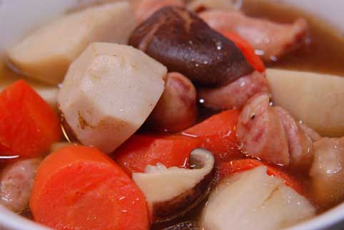 乱切りにした人参とごぼう、一口大に切った里芋、水でもどした干ししいたけなどなど