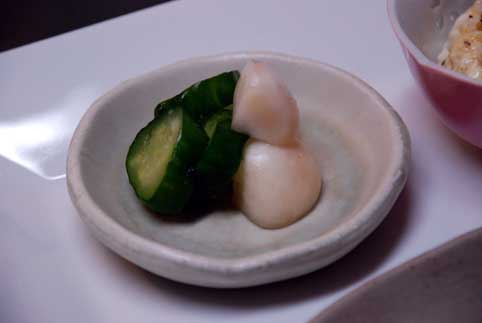 この前もらった小カブが残っていたので、きゅうりと一緒に塩もみにしました。