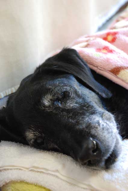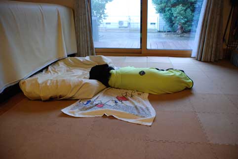 毛布も敷くのと掛けるのと、ダブルで包んで。