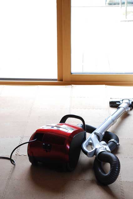 いつもはかるびが掃除機の前をチャカチャカ歩くので