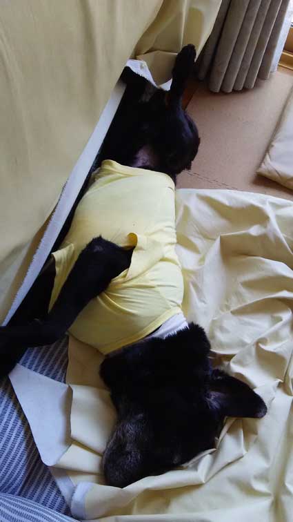 そっと戸を開けるとかるびがヘソ天で寝ている。