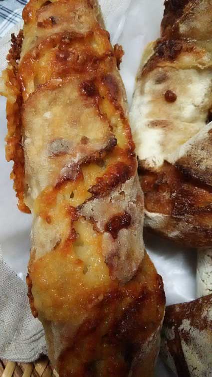 パリパリに焦げたチーズのバゲット