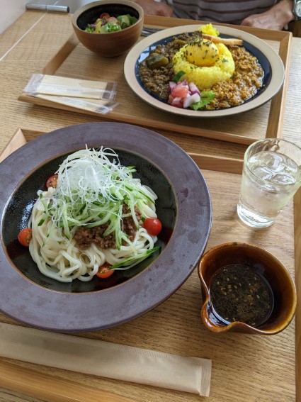 ピリッと辛いジャージャー麵とやはりあいがけカレー