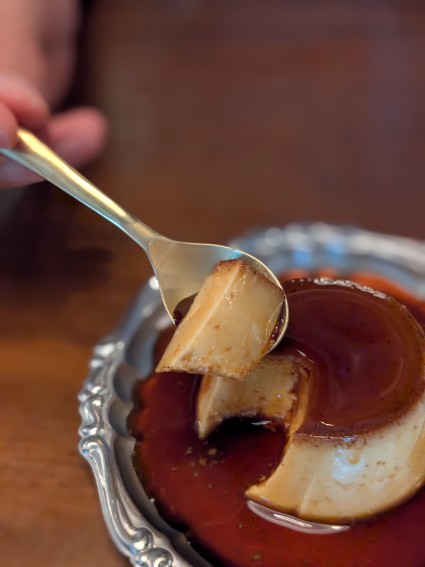しっかりした硬さのプリンに大人らしい美味しいソースがたっぷり
