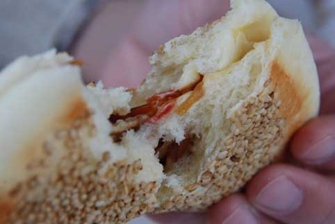 中を撮ろうと思って手でちぎろうとしたんだけど、ちぎれずにぐっちゃりとつぶれてしまった(笑)