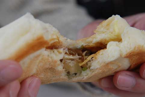 豚まんの鶏バージョンのような具がふわふわのパンに包んであって