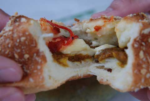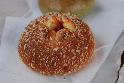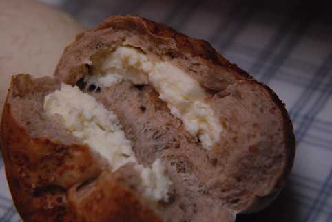 クルミが練り込んである生地にたっぷりとクリームチーズがはいっていて