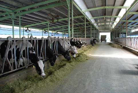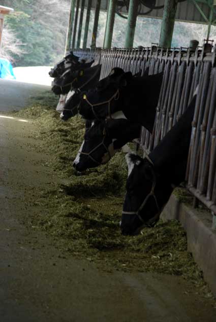 青草の香りがい~っぱいに満ちた牛舎で、のびのびと草を食む牛たちを見てると