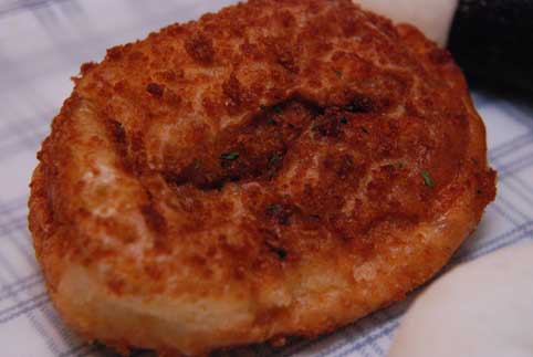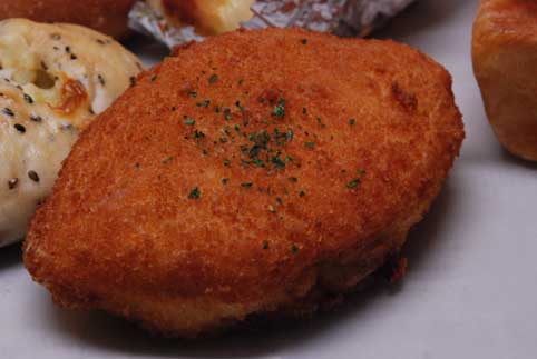 しっとりもっちりした生地で包みパン粉をつけて香ばしく仕上げてある。