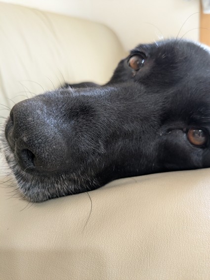 仕事の時にはソファで眠りこけているのにね。休みは分かるみたい。