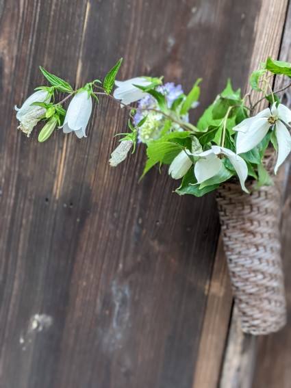 玄関横に飾られた花はホタルブクロ。