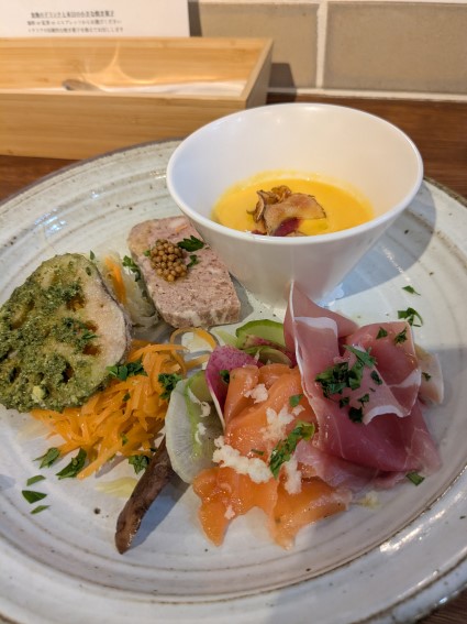 メニューにはかぼちゃとオレンジのスープとあるけど
