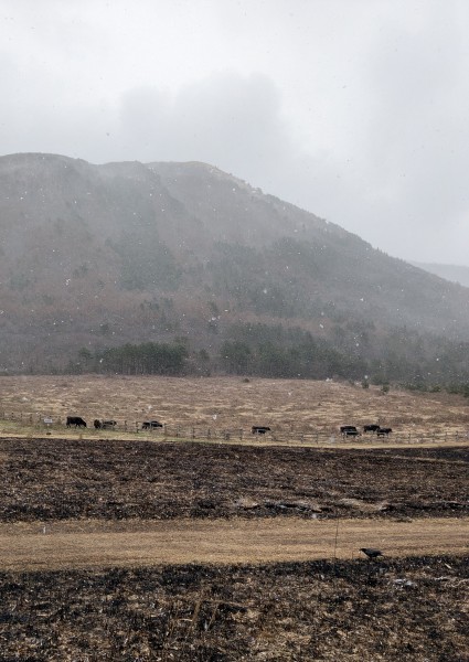 そして雪にうっすらと白くなる山には黒い牛たちが歩いていた。