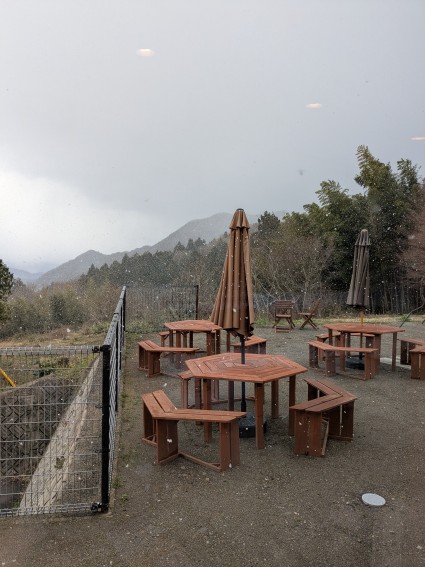 あまりにも寒かった昨日、三瓶山の麓を走っていると雪@@