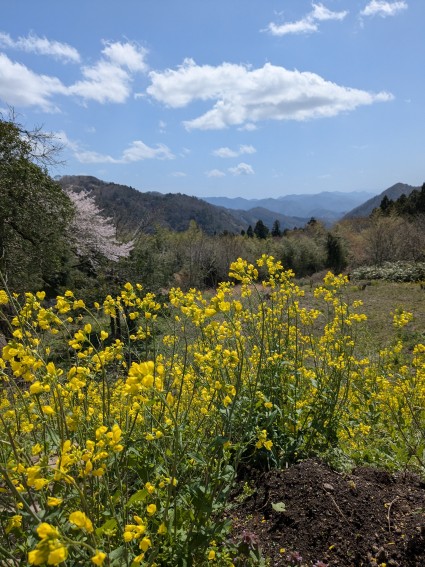 オーナーさんが種をまいた菜の花はこの前来た時より花をつけ