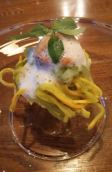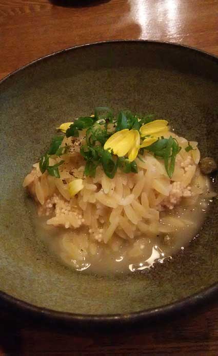 粒粒のパスタが口の中でプルンと存在感を出し、楽しい食感だった。