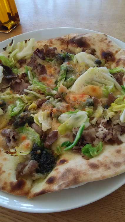 ピリっと唐辛子のオリーブオイルをかけて食べるんだけど、