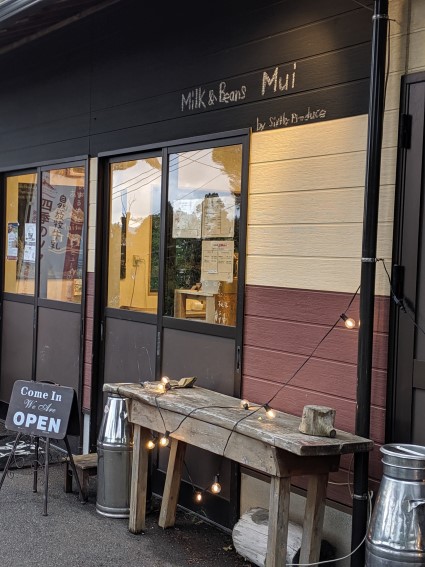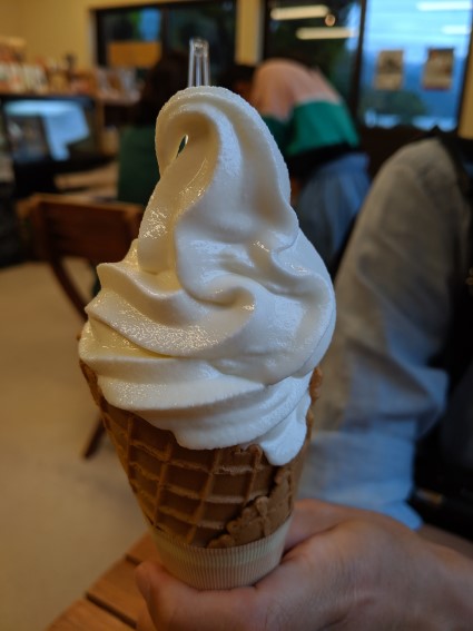 自然放牧牛のミルクで作られたジェラードを食べていると