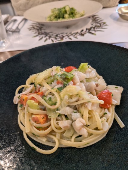 真鱈とキャベツ、フレッシュトマトのパスタで