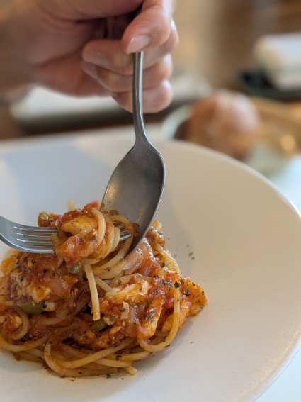 サワラの皮目にパリパリしたパン粉があってザクザクした食感