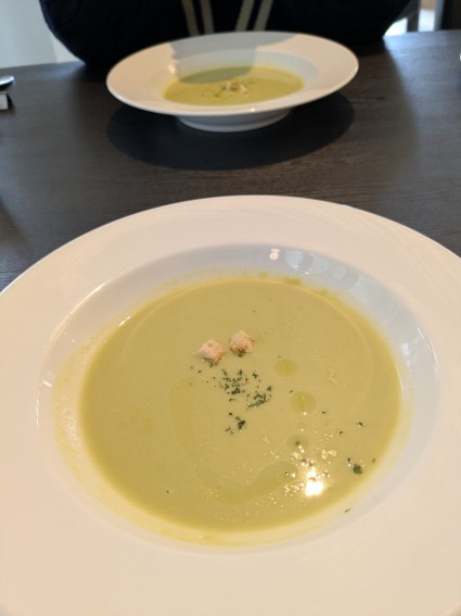 そして春らしいグリンピースのスープになっていた。きれいだ~。
