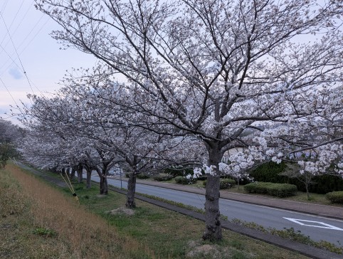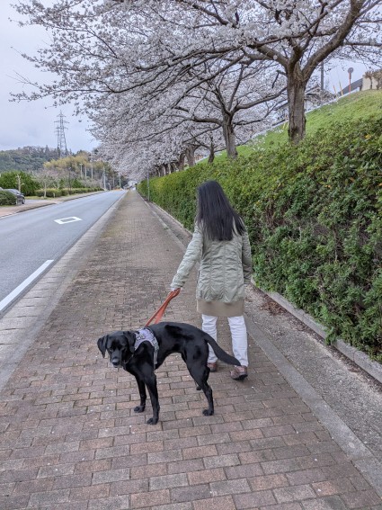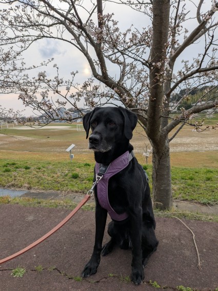 わさびと歩く道には桜並木があって少しずつ花が開いているけど、