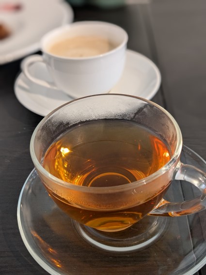 美味しいデザートに夫はカフェラテ、私はアールグレイの紅茶