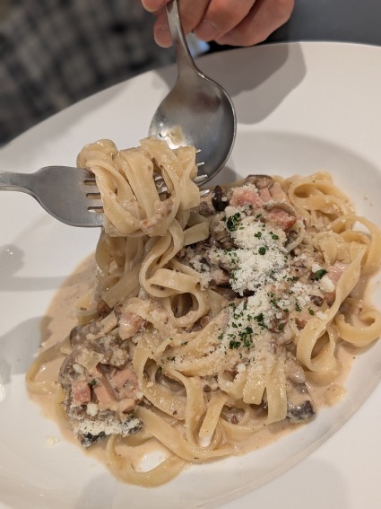 ボルチーニ茸&ベーコンの濃厚クリームタリアテッレ