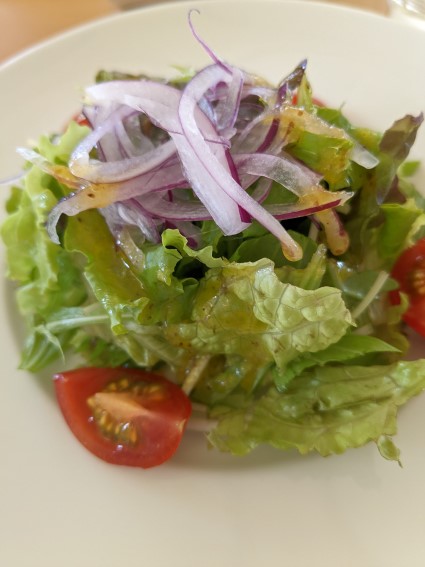 前はサラダにちょっとした前菜がついていたけど今は無し。
