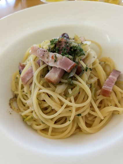 ベーコンと白ねぎのペペロンチーノ