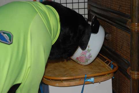 野菜やご飯を煮たあと、洗う前にかるびにあげると、