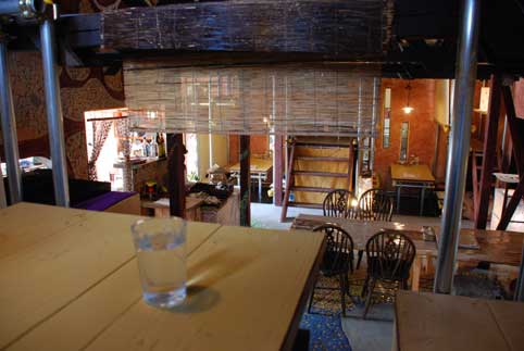 「好きな席へどうぞ」と言われて、はしごのような階段を上がって高いところへ登りました。