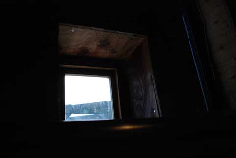 小さな窓から外を見ると、子供のころ、友達と作った基地にいるみたい。