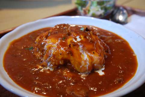 その上から濃厚なデミグラスソースがたっぷりとかけてあります。