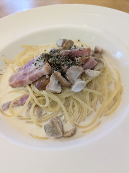 アツアツのパスタをフォークでクルクルっと巻いて口に運ぶ。