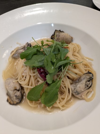 お目当ては先月からずっと食べたかった牡蠣とルッコラのペペロンチーノ