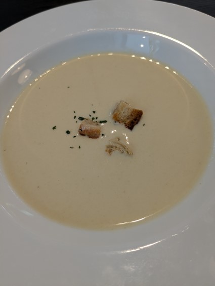 キツツキさんのランチは冷たいかぼちゃのスープから始まった。