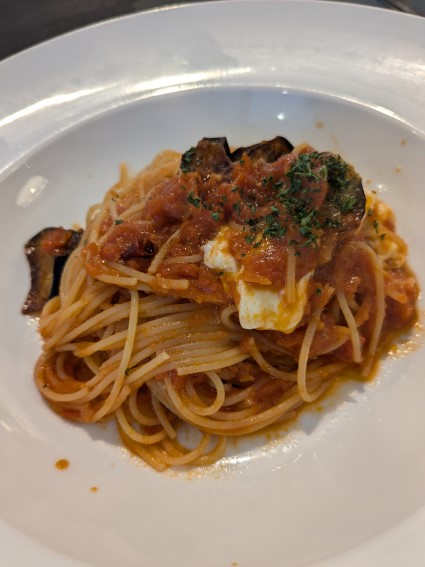 そして揚げナスとモッツァレラチーズのパスタ