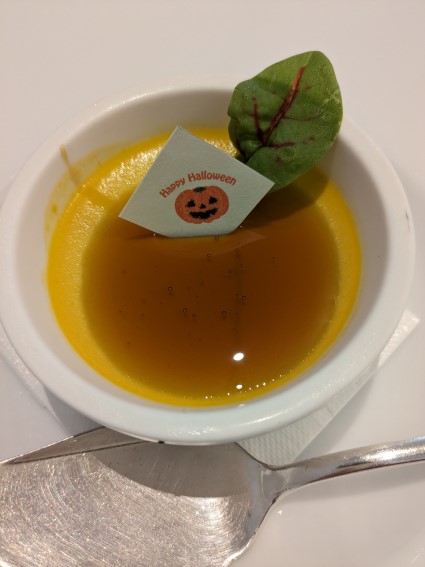 前回の冷たいビシソワーズから温かなかぼちゃのスープに。