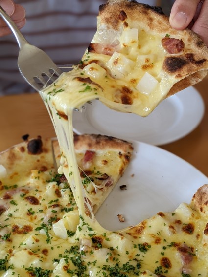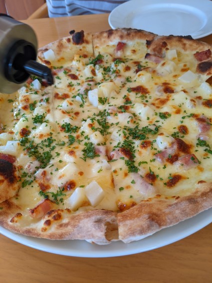 ベーコンとジャガイモとモッツアレラのピザを注文