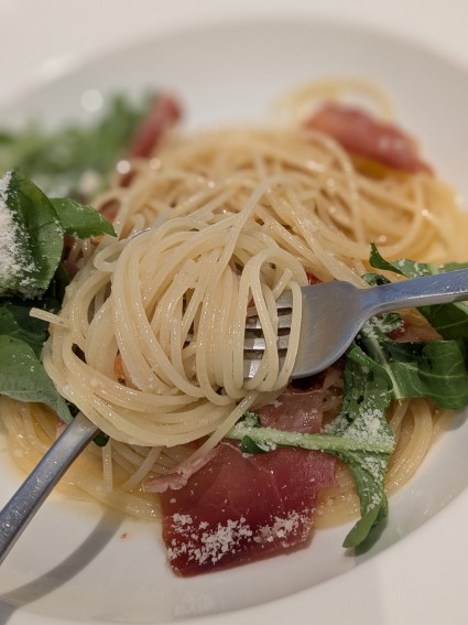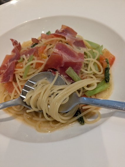 前回は時間がなかったので慌ただしくシンプルパスタだけ食べたけど