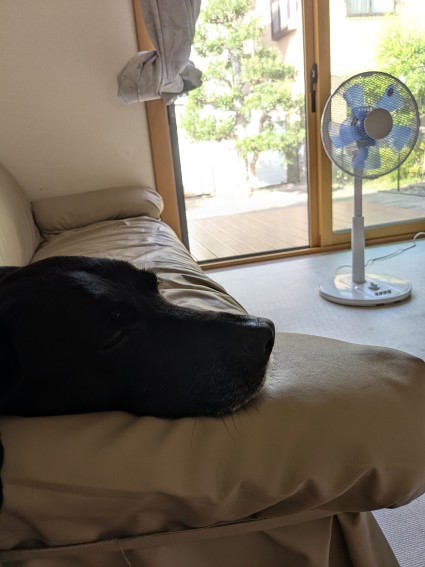 日中はエアコンが効いている別の部屋でわさびは過ごしたけど、